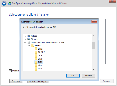 Cliquer sur "Parcourir", puis D:, "amd64" et "2k22" et cliquer sur OK.
