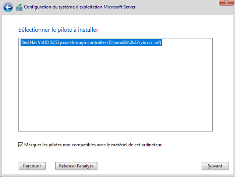 - Cliquer sur "Add additional drive for VirtIO drivers" puis choisir l'ISO des pilotes