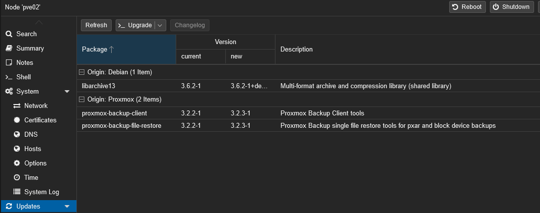 Il faut maintenant cliquer sur "Upgrade" pour mettre a jour le serveur Proxmox. Une page pop-up va se lancer (il faut l'autoriser).